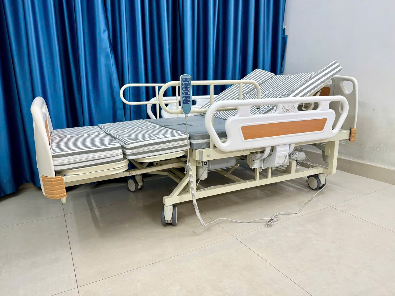 Với thiết kế đa năng, giường giúp người bệnh có thể tự điều chỉnh tư thế mà không cần phụ thuộc hoàn toàn vào người chăm sóc.